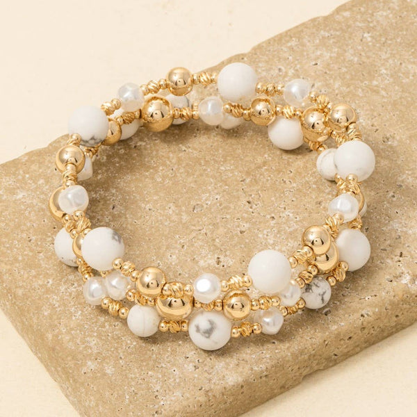 Stone Metallic And Pearl Beaded Bracelet Set