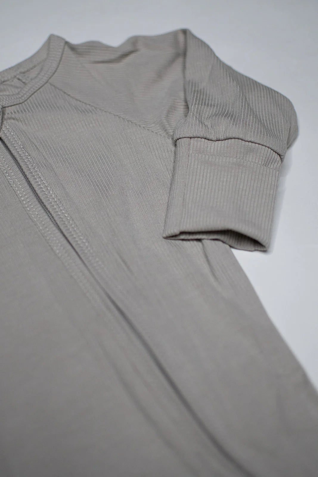 The ultimate in cozy comfort. This ribbed bamboo sleeper in a warm, neutral taupe is buttery-soft, breathable, and oh-so-gentle on delicate skin. The stretchy rib knit moves with your little one for all-day play and all-night snuggles, while the double zipper makes changes a breeze. Perfectly gender-neutral and endlessly cuddly, it’s a wardrobe staple you’ll reach for again and again.